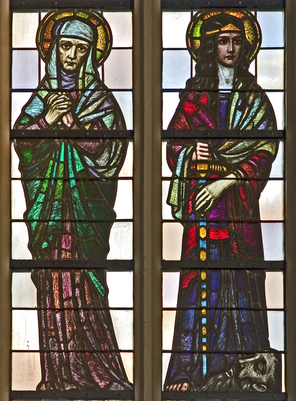 De afbeelding Deze vrouwelijke heilige, met een lichtkrans om haar gesluierd hoofd, houdt haar ogen gericht op de verte. Toch is haar blik naar binnen gekeerd, alsof zij mediteert. De handen heeft zij gevouwen voor haar borst. Het is een vrouw van middelbare leeftijd. Er zijn geen attributen afgebeeld die op martelaarschap wijzen. Een brede, blauwgroene mantel is gedrapeerd over het bovendeel van haar bruinachtige gewaad, dat haar voeten volledig bedekt. Om haar hals heeft zij een lila sjaal.